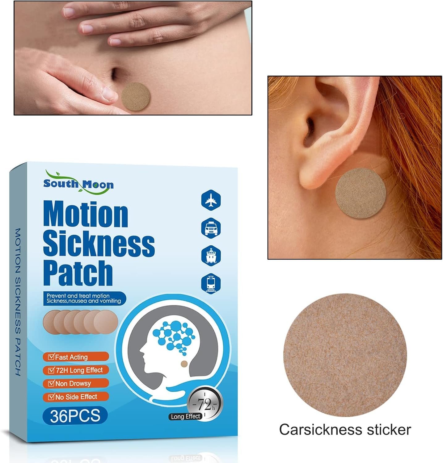 - 【Travel Sickness Patches】 100% natural plants, no pills or side effects at all! Our motion sickness sticker is an effective solution for almost all people who fight against motion sickness. Whether in cars, planes, or ships.