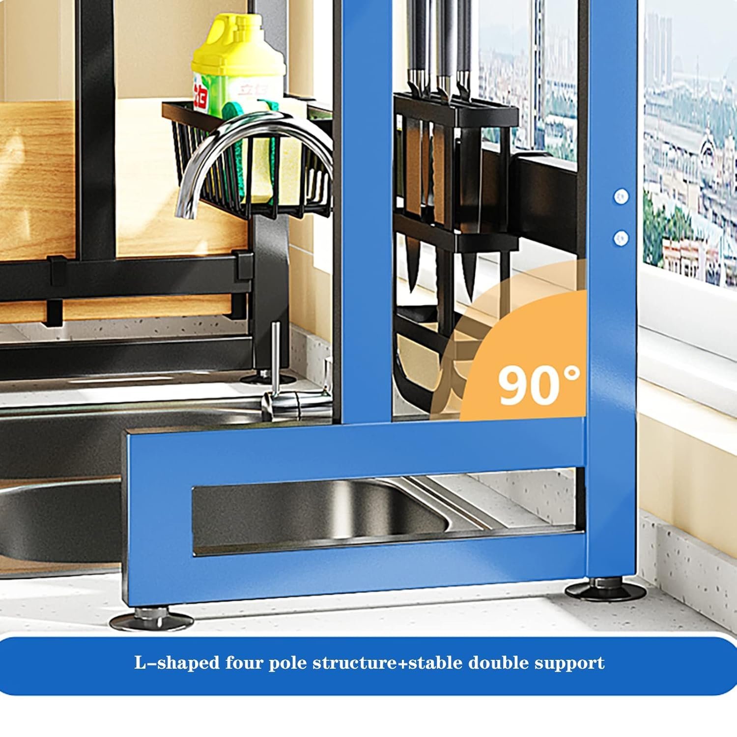 - ► ALL IN ONE KITCHEN SPACE SAVER The dish drying rack on the kitchen counter is made of high quality stainless steel. There is a suction cup at the bottom of the shelf, which ensures adsorption and prevents the dish dryer from wobbling back and forth. The dish dryer above this sink features an integrated design that fits almost all sizes of household sinks.
