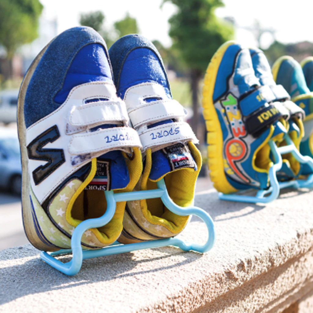 Can be hung on balcony , after washing, put the shoes on these rack and hang them on balcony, effective to air dry shoes .