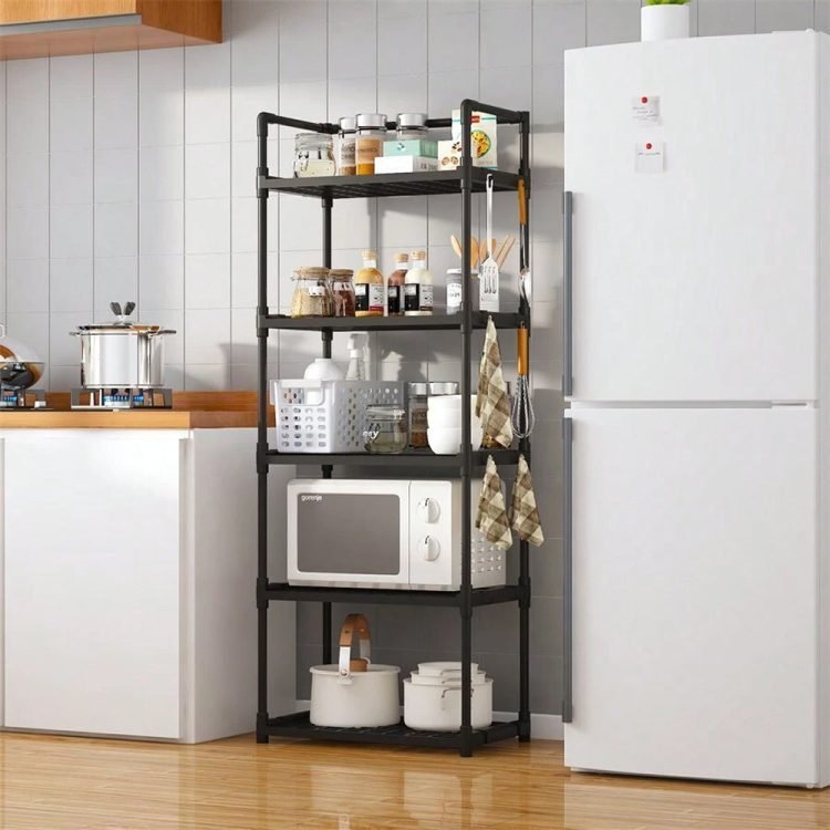 - This kitchen utility storage rack provides ample space for all your everyday necessities. Store microwaves, ovens, juicers, toasters, coffee makers, spices, cutlery, cookware, and more.