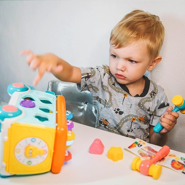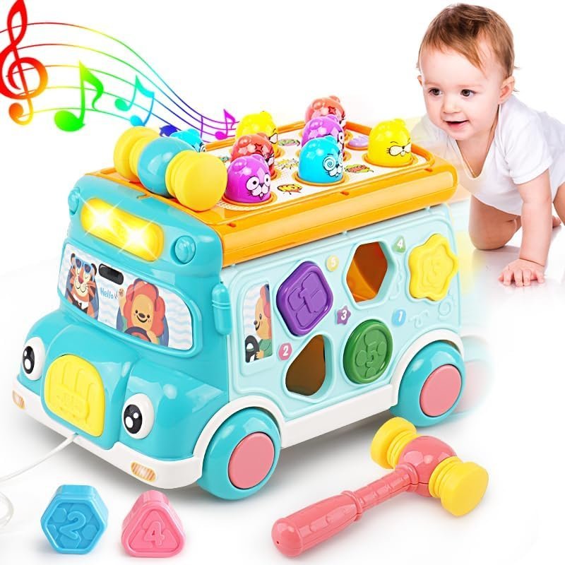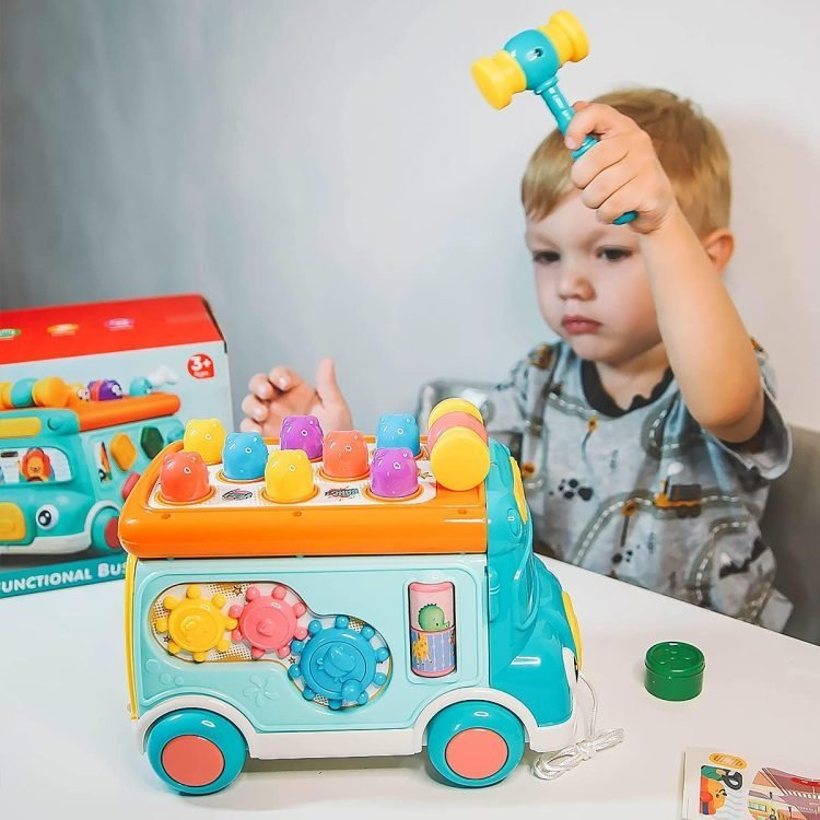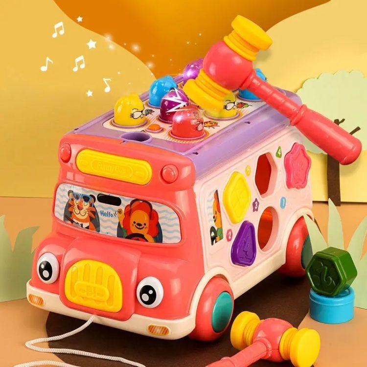 - This bus toy helps improve your baby’s visual perception, cognitive development, crawling, hand eye coordination, sensory perception and gripping abilities. It enhances your baby’s imagination and creativity and encourages them to develop a lifelong love of learning.