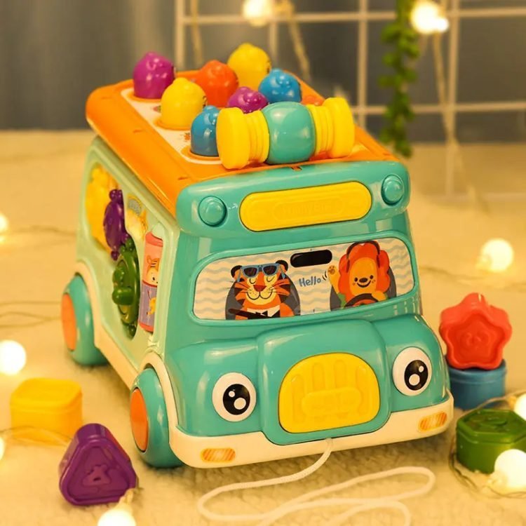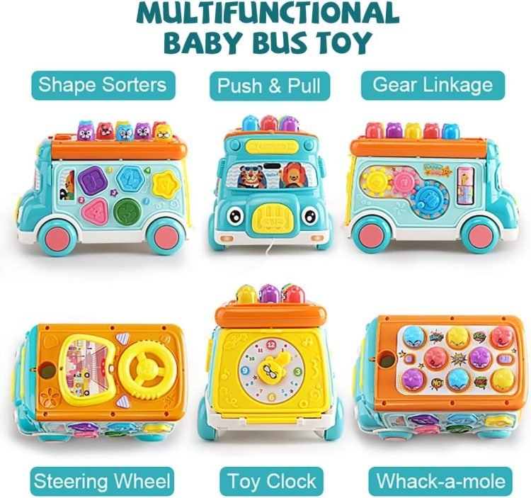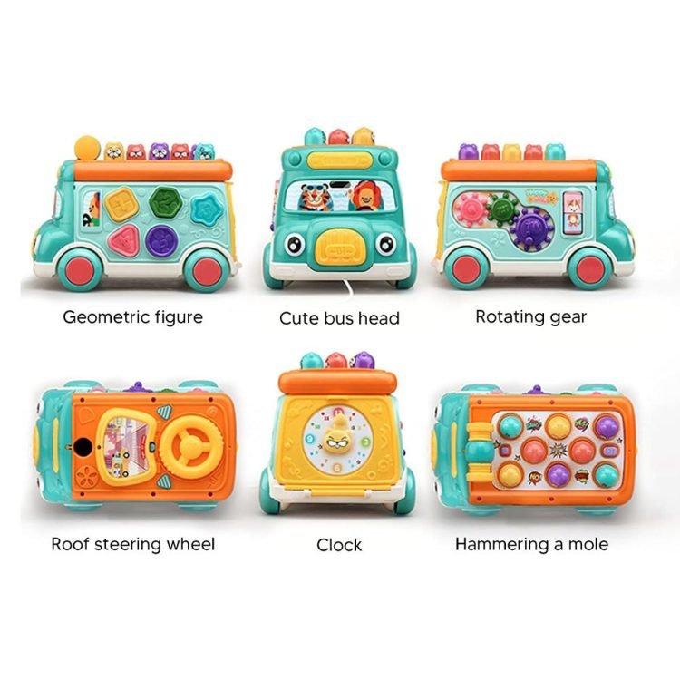 - Featuring a clock with facial expressions on its back, this bus toy is not just a fun and educational toy for your baby, but it also promotes play based on learning, imagination, and creativity. Your baby can enjoy exploring its six sides and learning all the time.