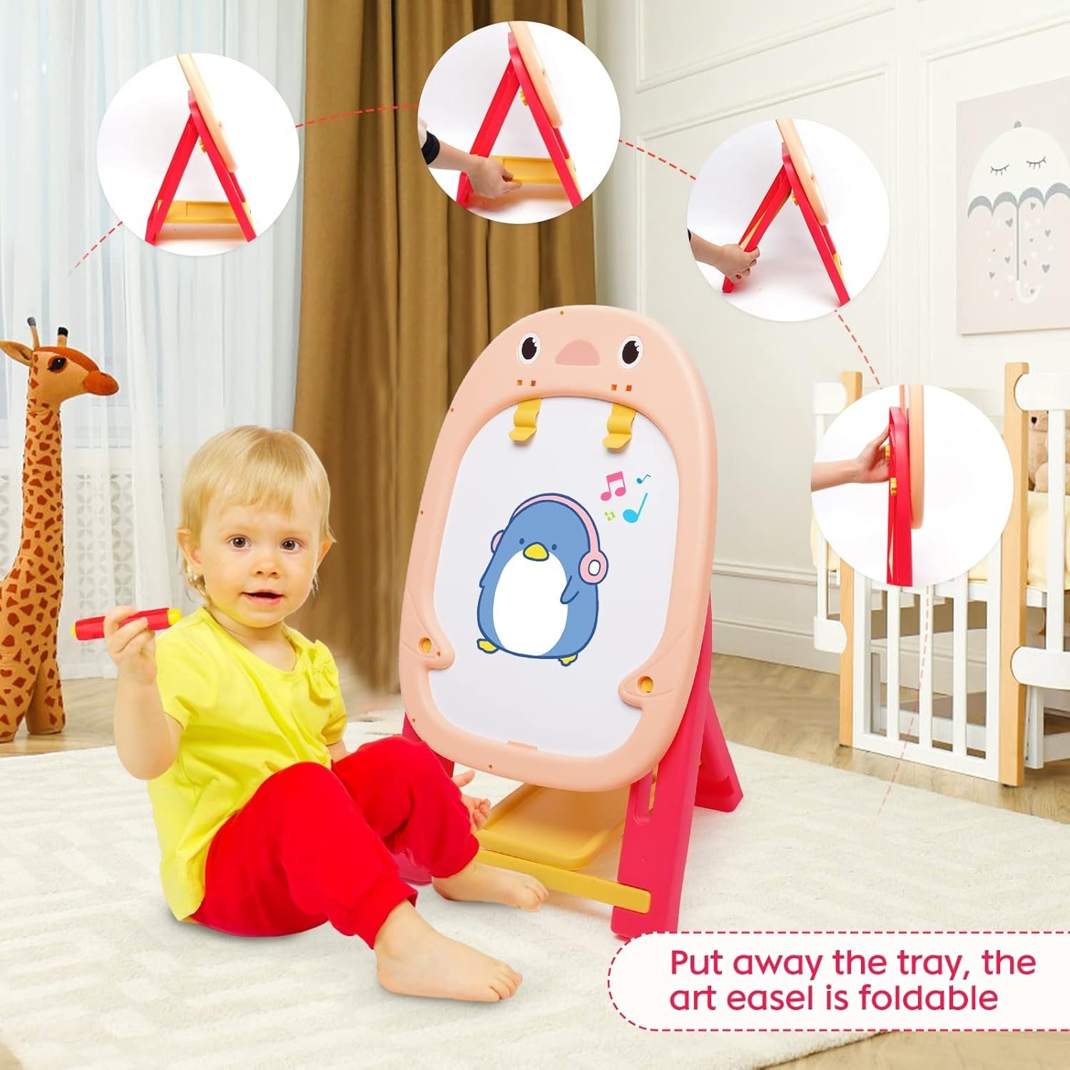 • Easy assembly and storage space: this easel is suitable for toddlers and it takes less than 3 minutes to assemble. Installation is simple and fast, and children can assemble it alone or together with adults to train their practical skills. It can be easily folded and placed in any corner without taking up space.