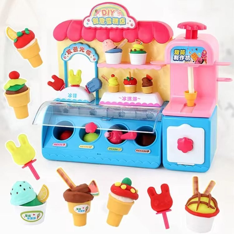 Creative 3D Color Clay Toys Ice Cream Shop Ice Cream Machine Playdough Clay Mold Tool Set Children DIY Toys