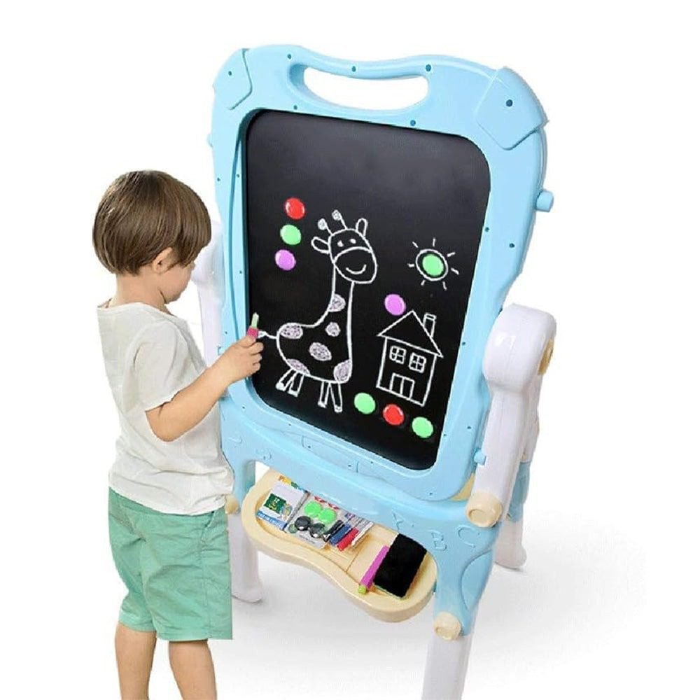 • Designed with double-sided chalkboard and dry erase board, 360 degrees rotation drawing board, and freely adjustable easel’s height, this kid?s painting easel perfect for your kids to play with sibling or friend for double fun and creativity.
