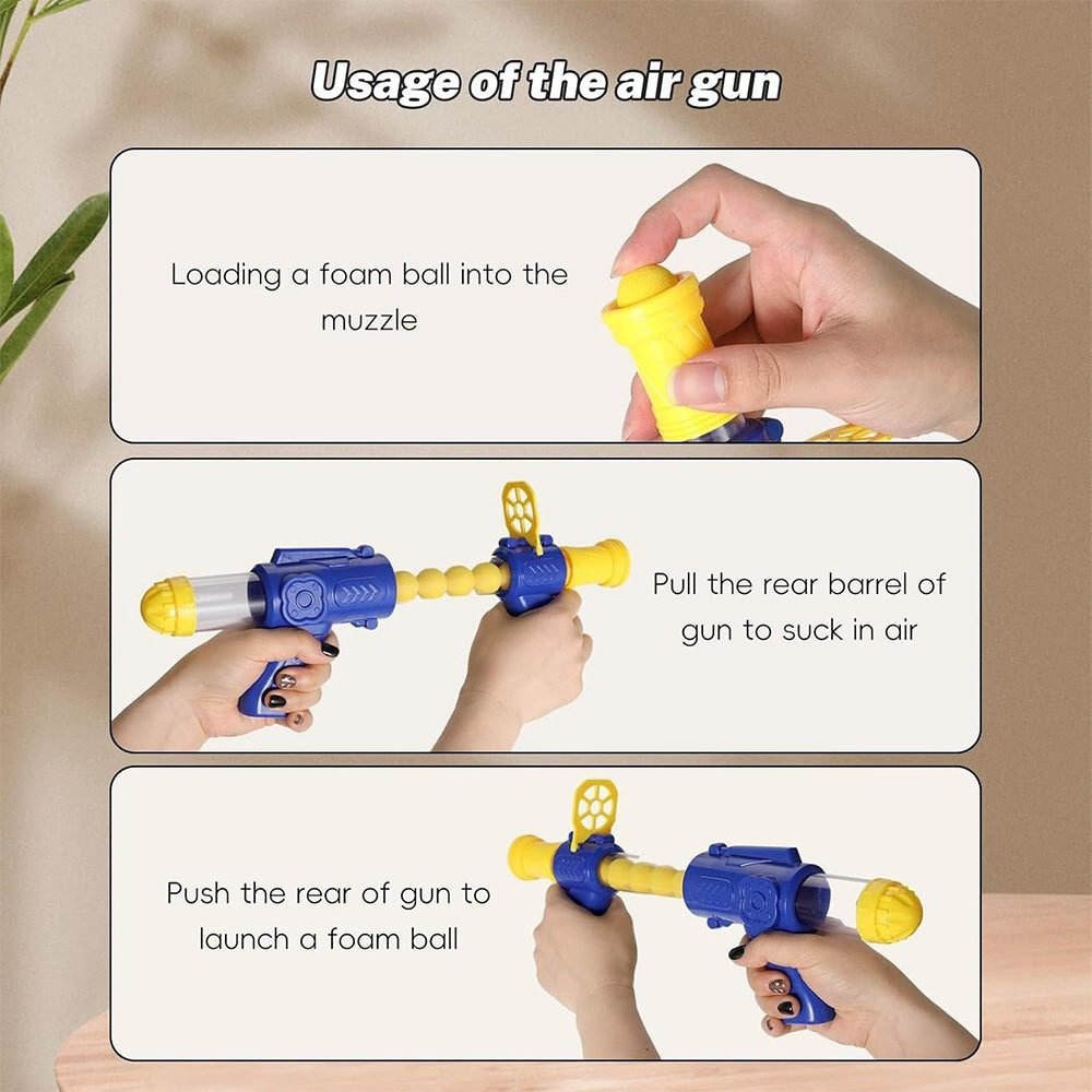 - [Safe Material] EVA ball made of soft foam, safe and non-toxic, recyclable; Powerful air pump gun made of ABS environmentally friendly materials and works by using the aerodynamic principle.