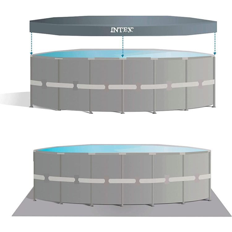 - All the edges of the above-ground pool Intex 26334 are rounded for the safety of children, and the PVC is equipped with SUPER-TOUGH ? technology, which consists of three layers: an inner and outer layer of thick and resistant PVC and an interphase layer of polyester.