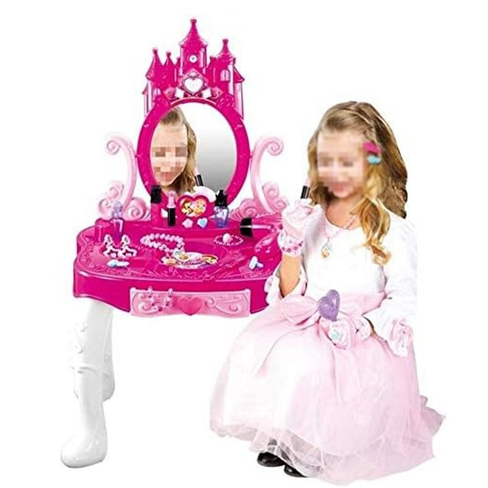 - This Portable Vanity Dressing Table play set is perfect for creative children interested in makeup and styling games!