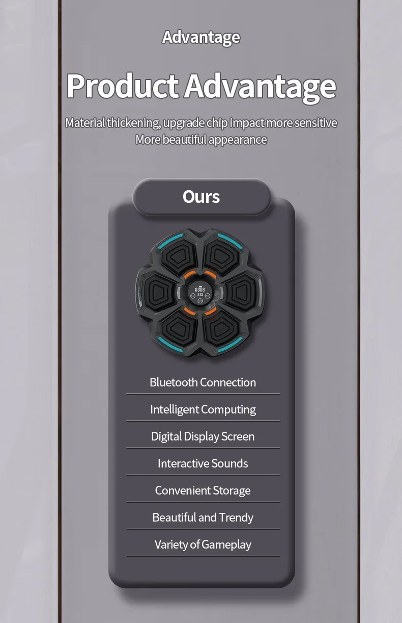 4.Skin-friendly Material and Versatile Usage:?Made with skin-friendly materials, the smart boxing game allows users to freely punch along with the music, enhancing reaction speed, mental agility, and overall fitness. It serves as a stress-reliever and can be enjoyed by the whole family, encouraging bonding and interaction.