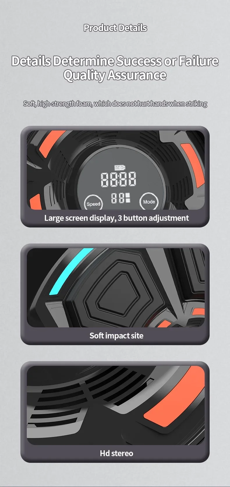 2.Seamless Bluetooth-compatible Connectivity:?This boxing training punching equipment can be connected to smart BT devices, enabling quick and convenient pairing with smartphones. The BT connection allows users to play their favorite songs effortlessly, enhancing the workout experience.