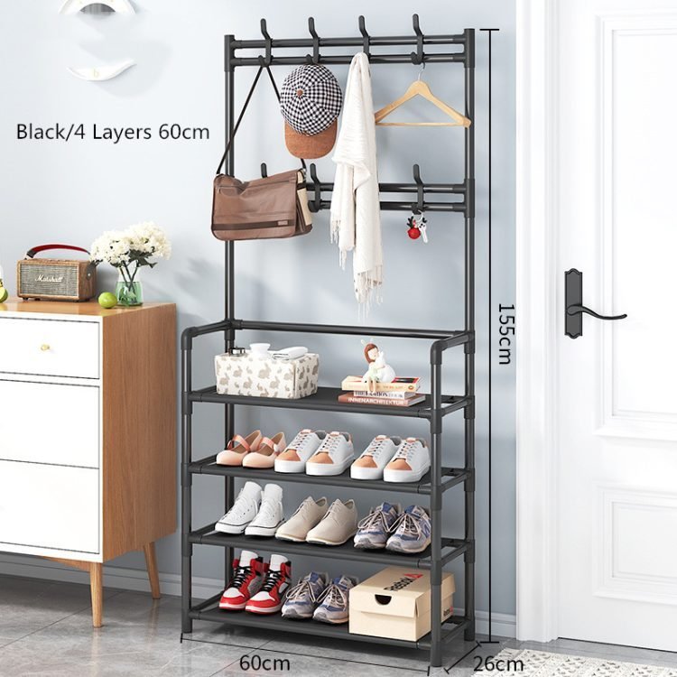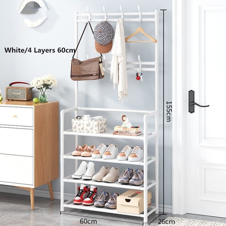 - It is convenient to store shoes, accessories and other items under the clothes on the hanger shelves.
