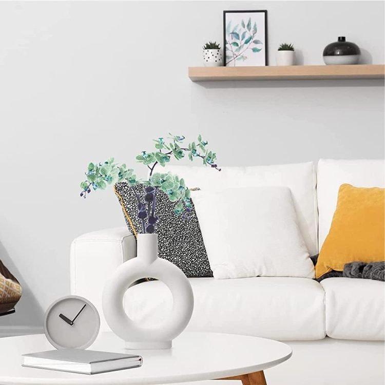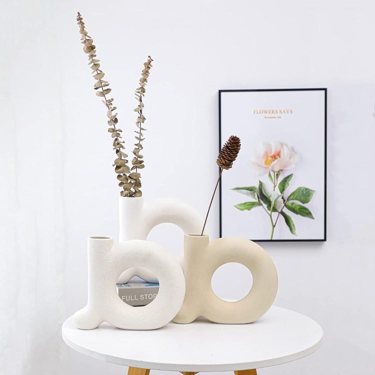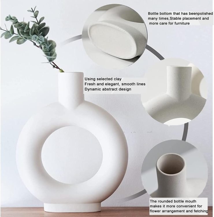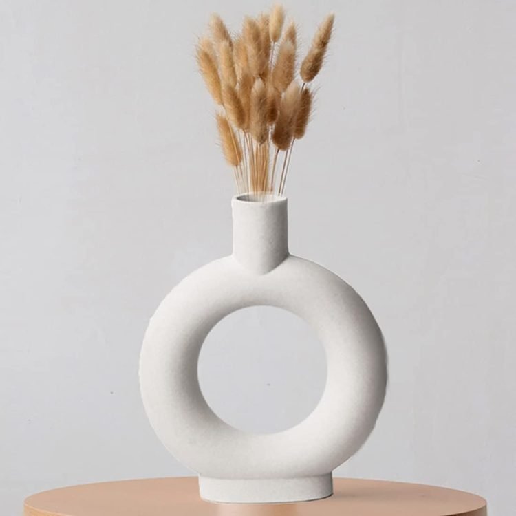 Nordic Modern Style,Nordic Ceramic Donut Vase Circular Ceramic Flower Vase Pot Modern Arts Decoration for Living Room Office Home Table