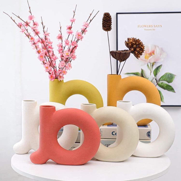 • MODERN O SHAPE DONUT VASE- While other vases are too big or small and the same boring colour and design, this Donut O Shape Vase is unique, with a SUPERB clay effect finish to enhance YOUR ROOM DECOR.