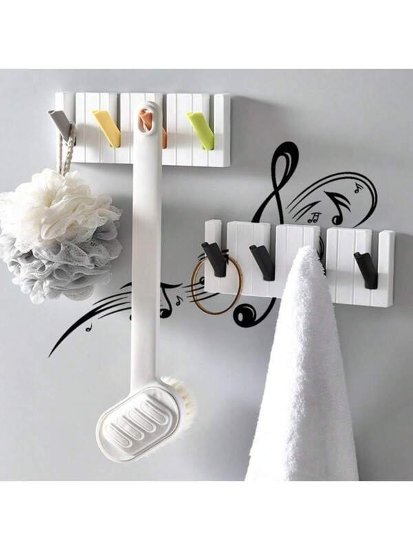 Piano Wall-Mounted Coat Hooks, with 4 Retractable Hooks, Entryway Wall Coat Rack Coat Hanger, Decorative Adhesive Hooks for Umbrella,Bag, Key