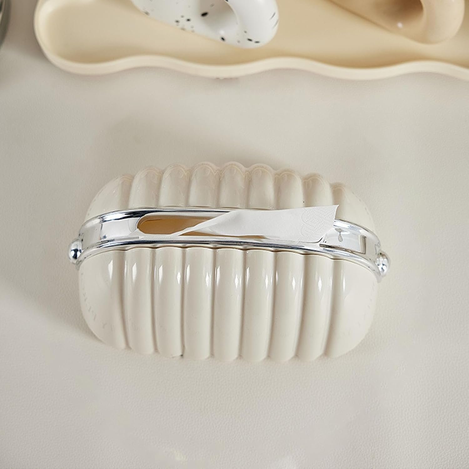 Plastic Decorative Tissue Organizer Box Designed With Shell Shaped Modern Design