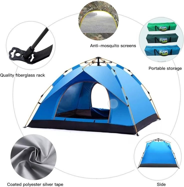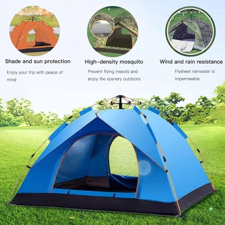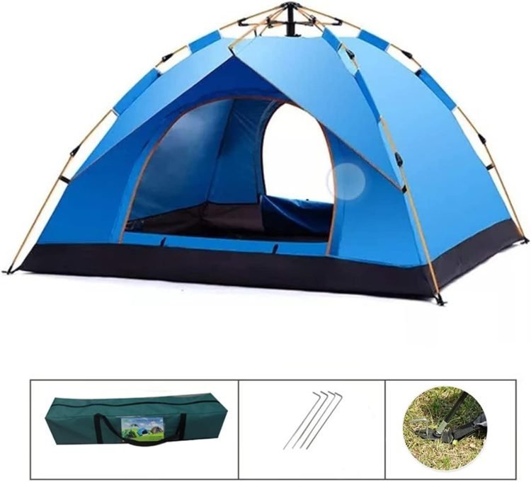 Pop-Up Camping Tent ?Automatic Pop Up Tent for 2-3 Person?Waterproof Oxford Cloth – Two Doors?Waterproof Windproof, UV Protection, Easy Set Up?with Carrying Bag for Family Camping Hiking 200X150 CM