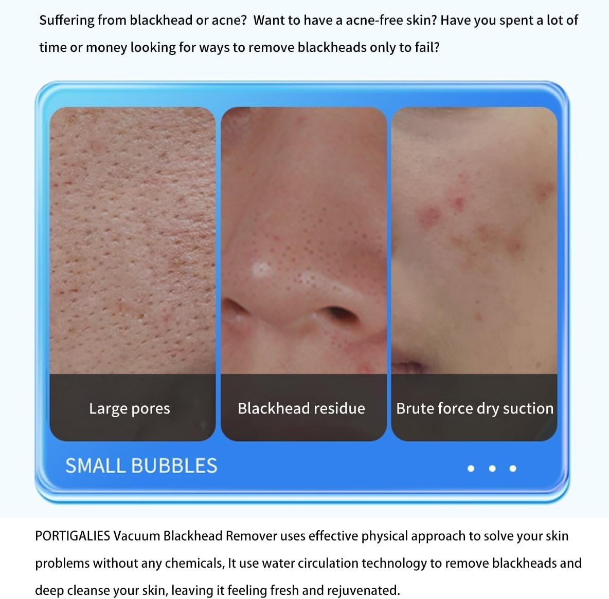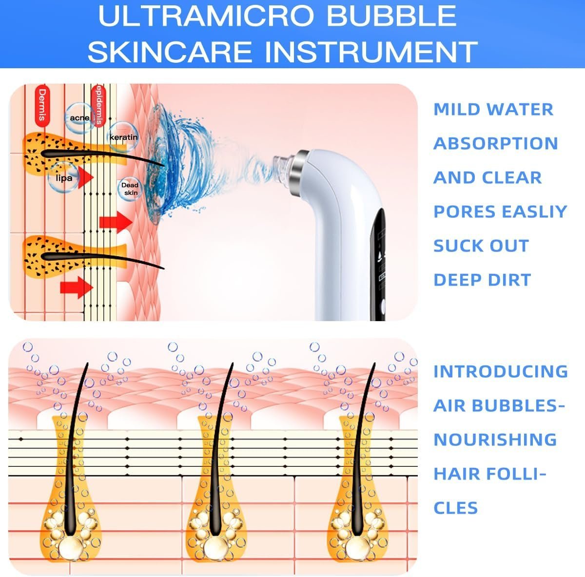 - INNOVATIVE INTEGRATED DESIGN – Unlike traditional suction methods, our blackhead remover has a water rinse function during sucking. You can add a cleansing solution suitable for your skin to the water reservoir to help cleanse. Microbubble water cycle machine cleans the pores with soft water spraying and water absorption, leading into the pores and nourishing the pores. It combines cleaning and maintenance, breaking the traditional strong dry method to absorb physical dry.