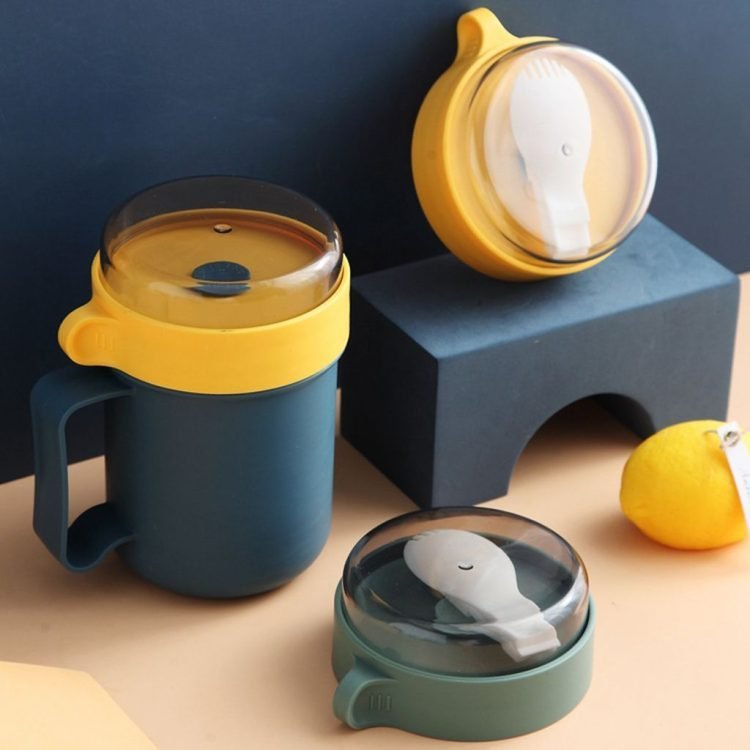 The cup has a handle, easy to carry