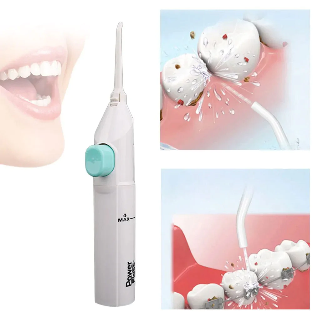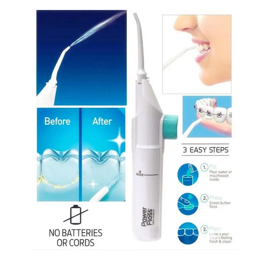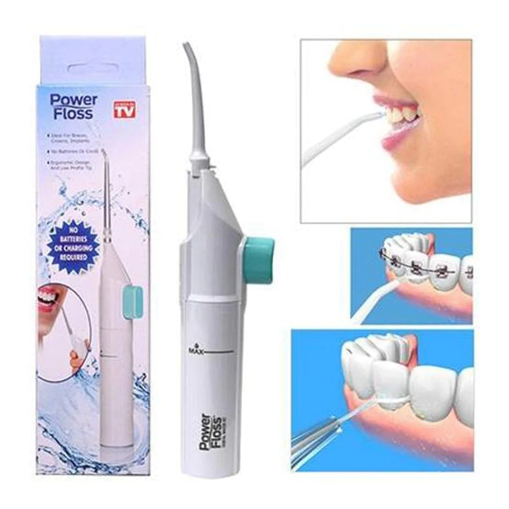 Portable Dental Water Jet Power Floss help you keep your teeth sparkling clean. Ideal for Braces, crowns, Implants.