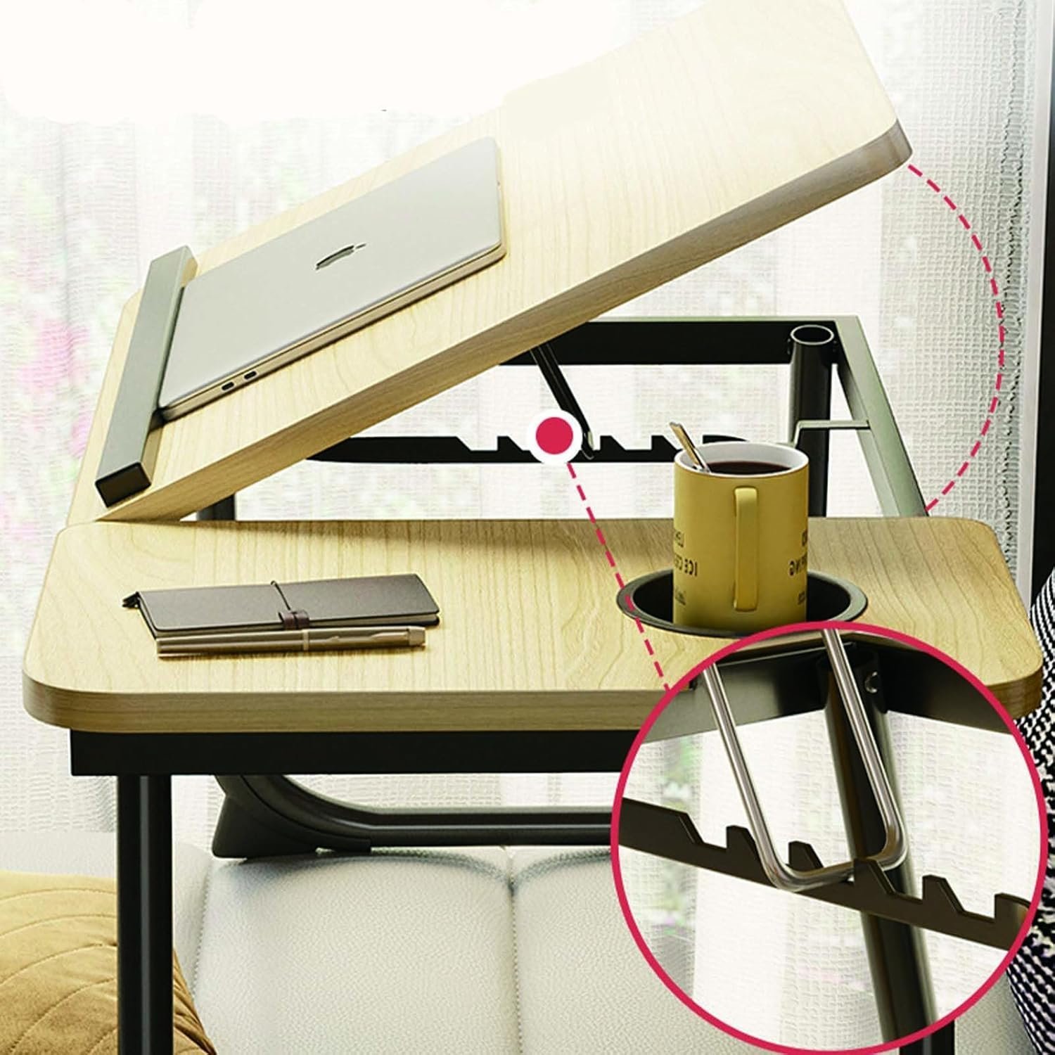 - [Portable Foldable Laptop Table] – Open the table legs to use (no installation required). After use, fold this down to a compact size and store it next to the sofa or under the bed without taking up too much space.