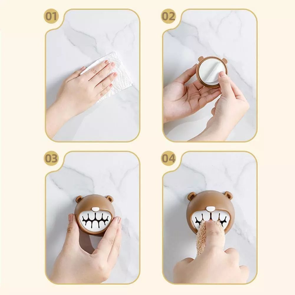1. Easy to install: This bear hook features a non punching design and can be easily installed on bathroom walls or flat surfaces without the need for nails or screws.