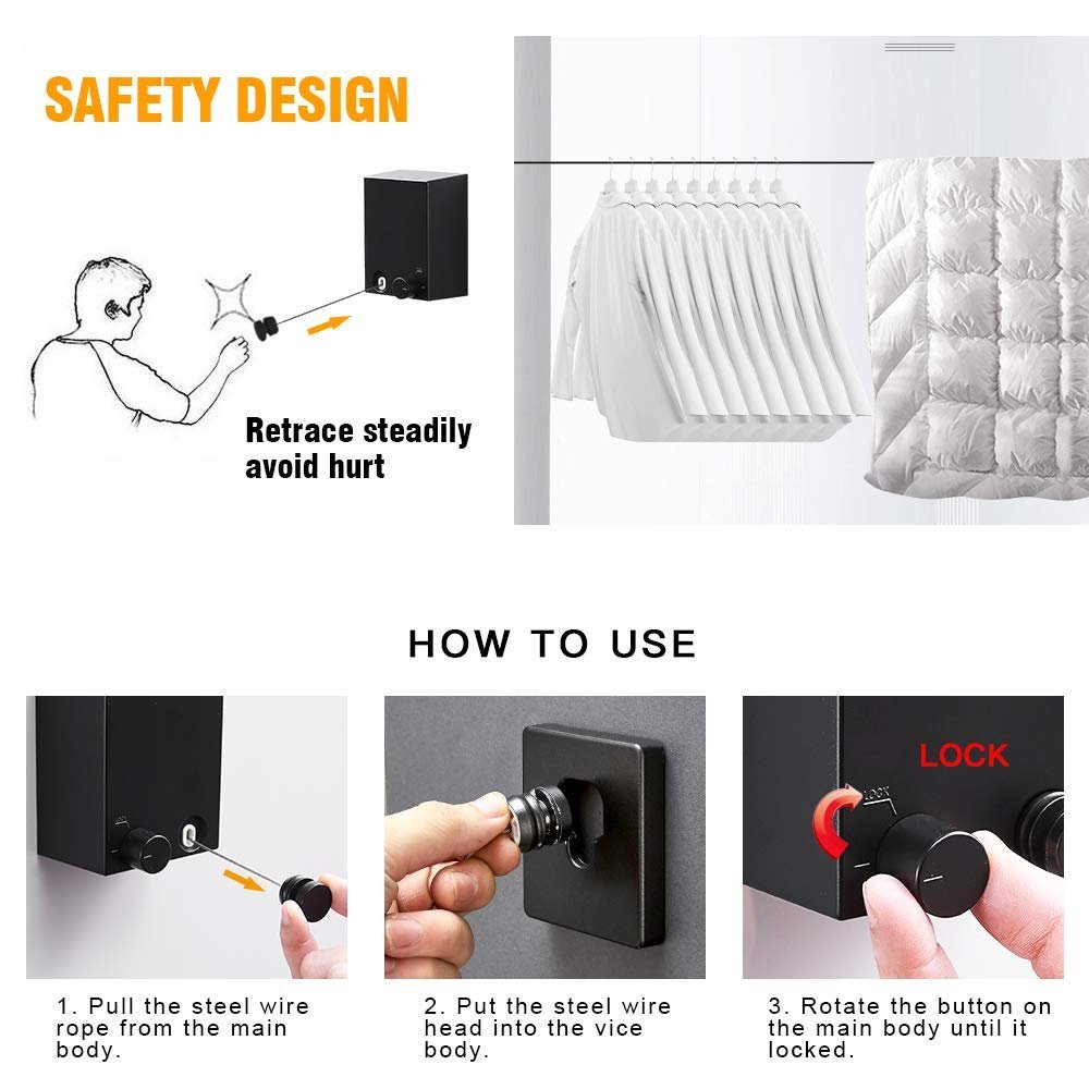 - Heavy Duty – Made of premium ABS material and aluminum bracket, clothesline is heat-resistant, ensuring high quality and longevity.