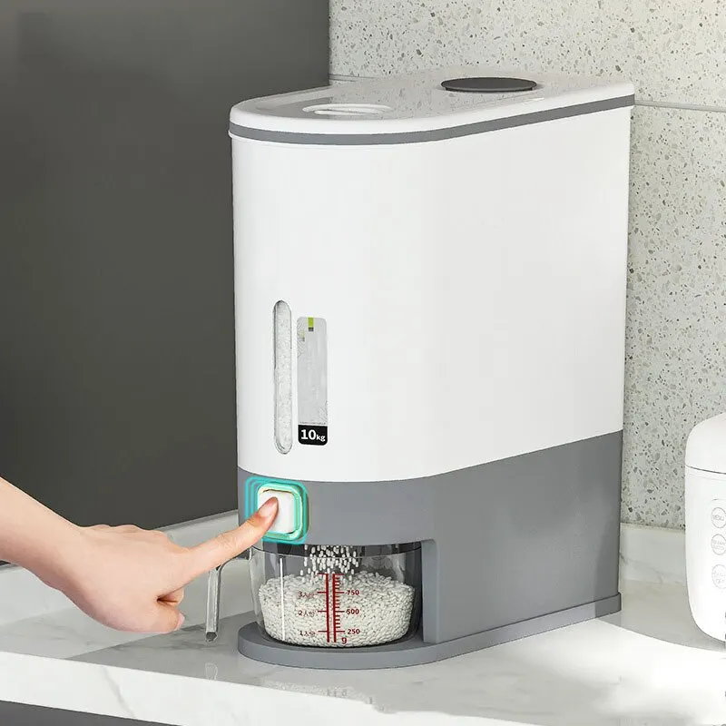 1,One-Click Dispensing: With justtouch of the Rice Dispenser Rice Container, you can conveniently get the desired amount of rice from Rice Dispenser Cereal Containers.