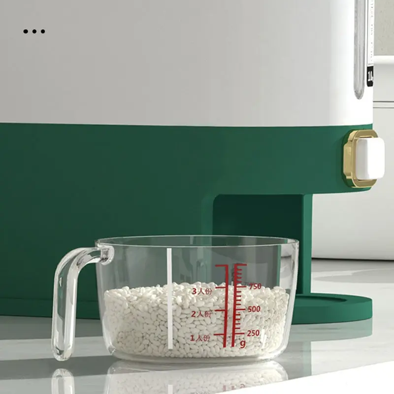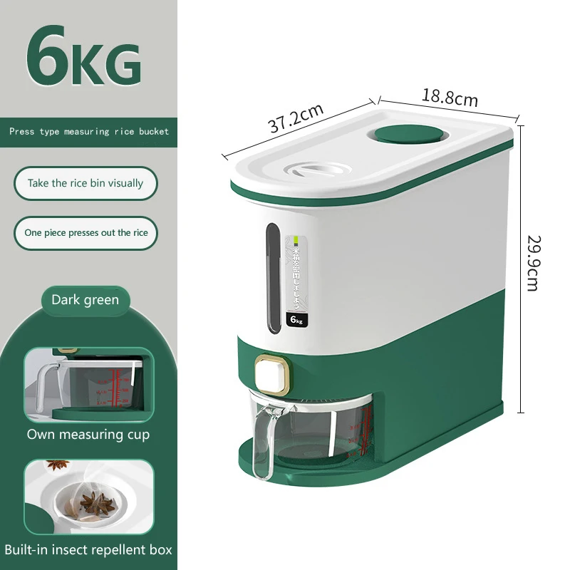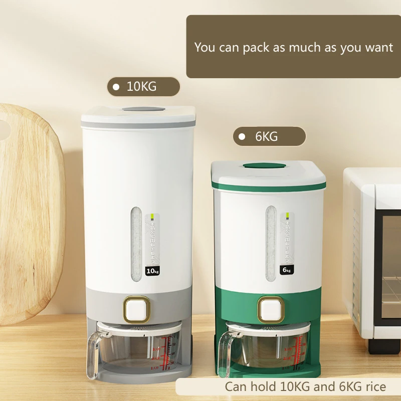 5,Wide Application: In addition to storing rice, Kitchen Rice Dispenser Storage Containers can also be used to store more dry food such as flour, beans, spices, and pet food.