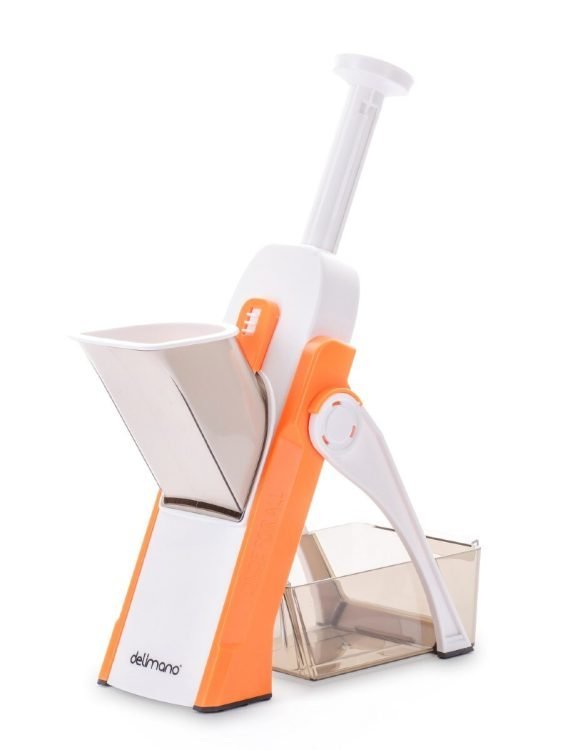 With 30+ slicing options, the mandoline cuts perfectly-even pieces from 1-8mm in thickness while also offering julienne, matchstick and dicing options. The new veggie cutter is impressive with its clean and fast cutting performance and high operating comfort and safety level, making food prep quick and easy!