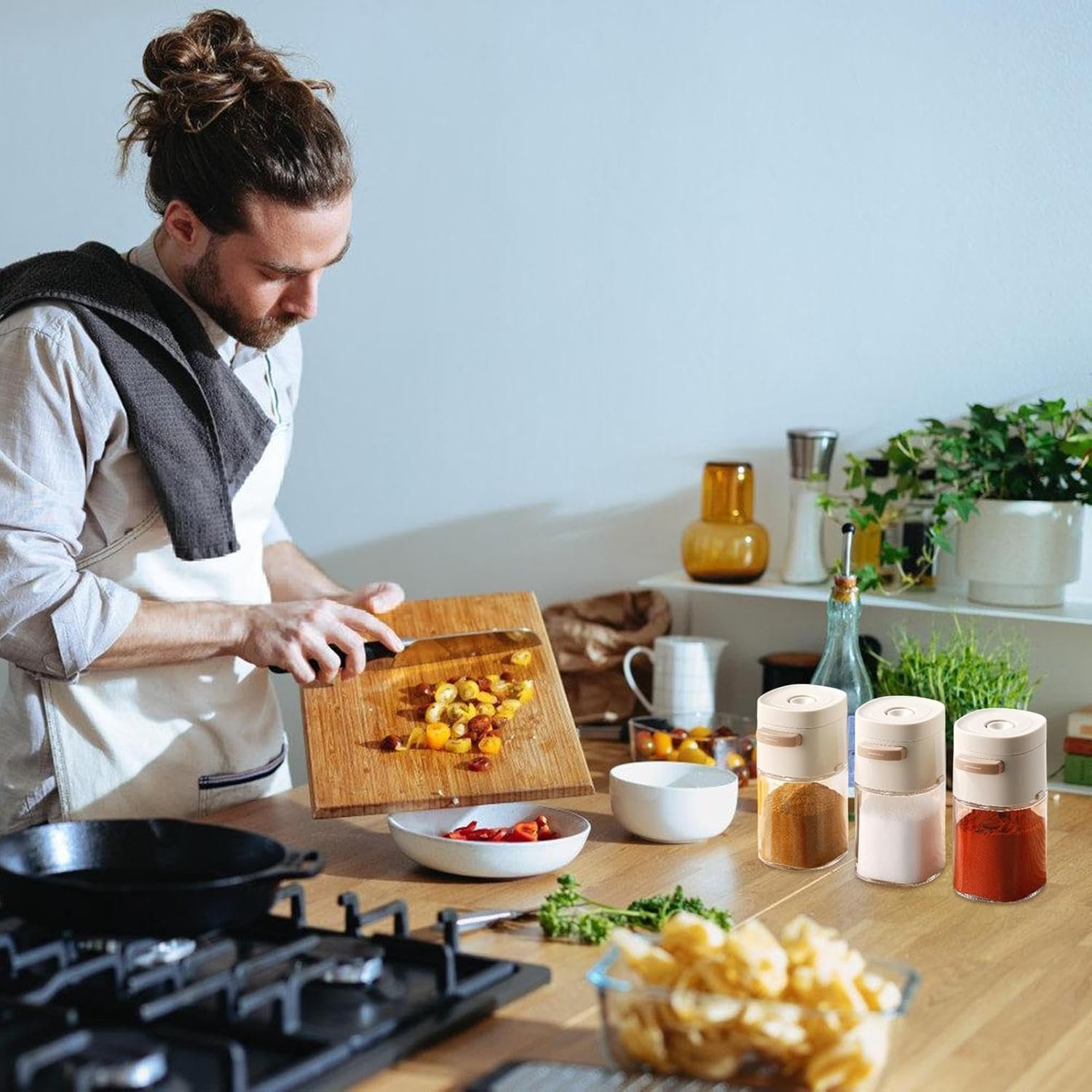 - Enhanced Sprinkling: Elevate cooking game with our salt and pepper shakers that help spread seasoning more evenly. The push-button design lets you control the amount and speed of seasoning, while making your food more delicious.