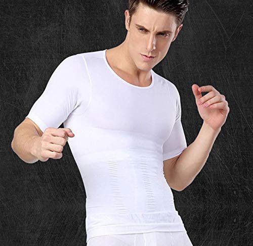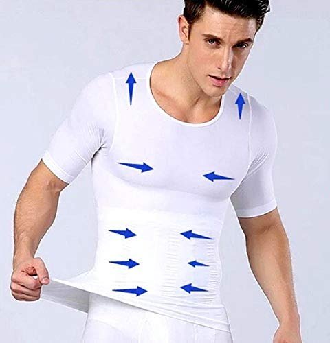 • It is a Compression T-shirt for men. Slims stomach, waist and abs; smoothes chest. Made with premium Elastane.