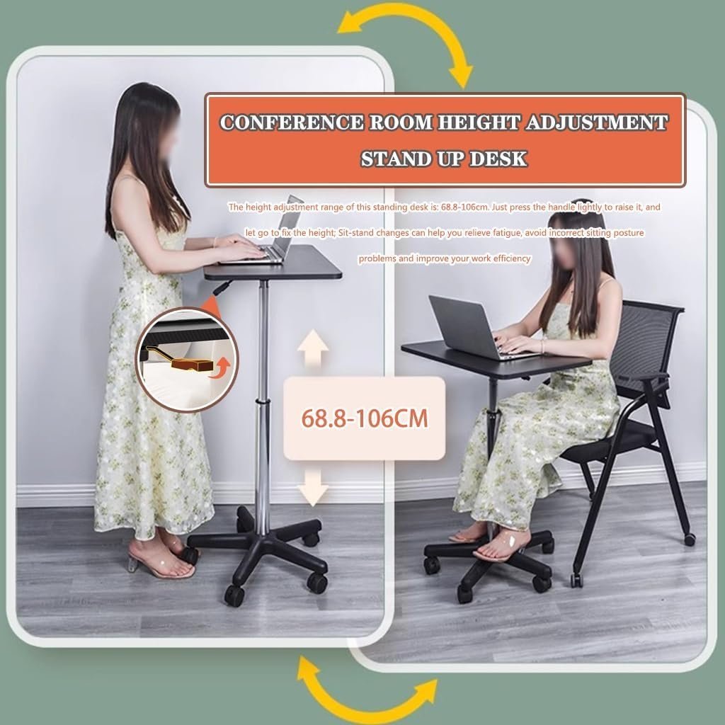 • ??Conference room height adjustment stand up desk?: The height adjustment range of this standing desk is: 68.8-106cm. Just press the handle lightly to raise it, and let go to fix the height; Sit-stand changes can help you relieve fatigue, avoid incorrect sitting posture problems and improve your work efficiency