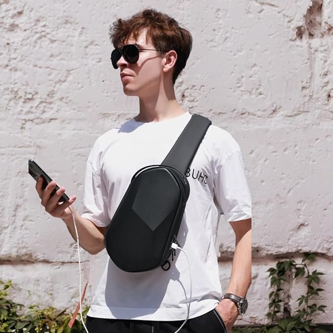 - [simple and unique shell design] this sling bag inspired by geometry figure,made by 3 layer PU with soft surface ,Has a good buffering effect on exterl pressure, Slim and lightweight ,it works as an cool and protective way to carry your ipad or electronic product.