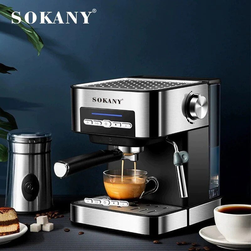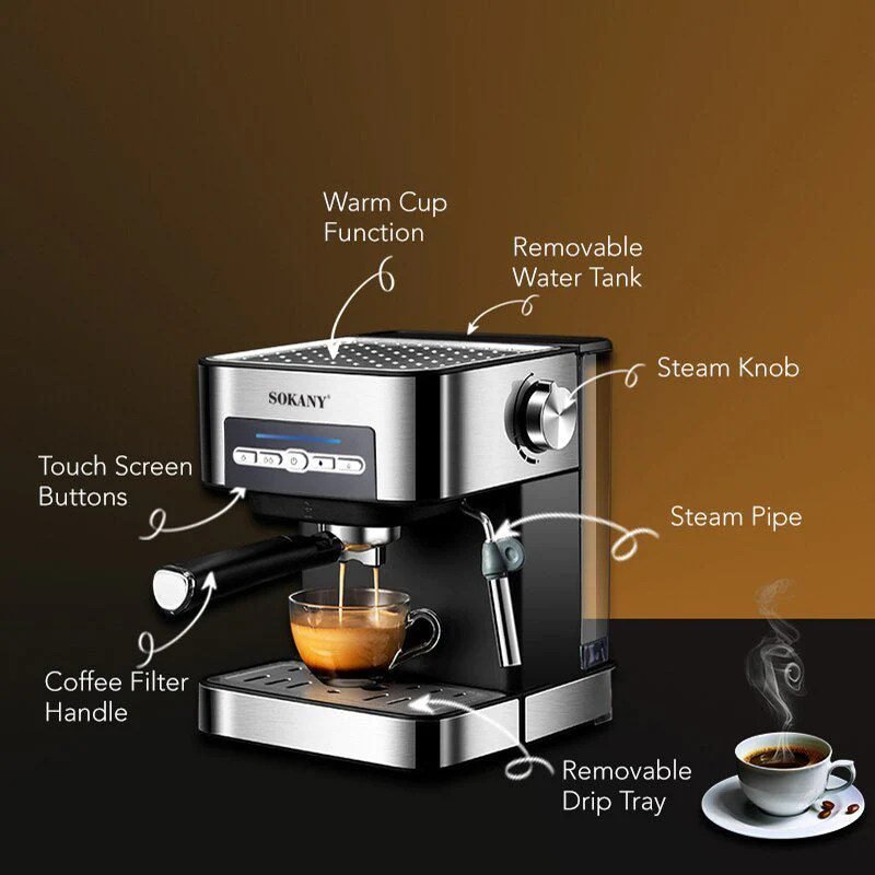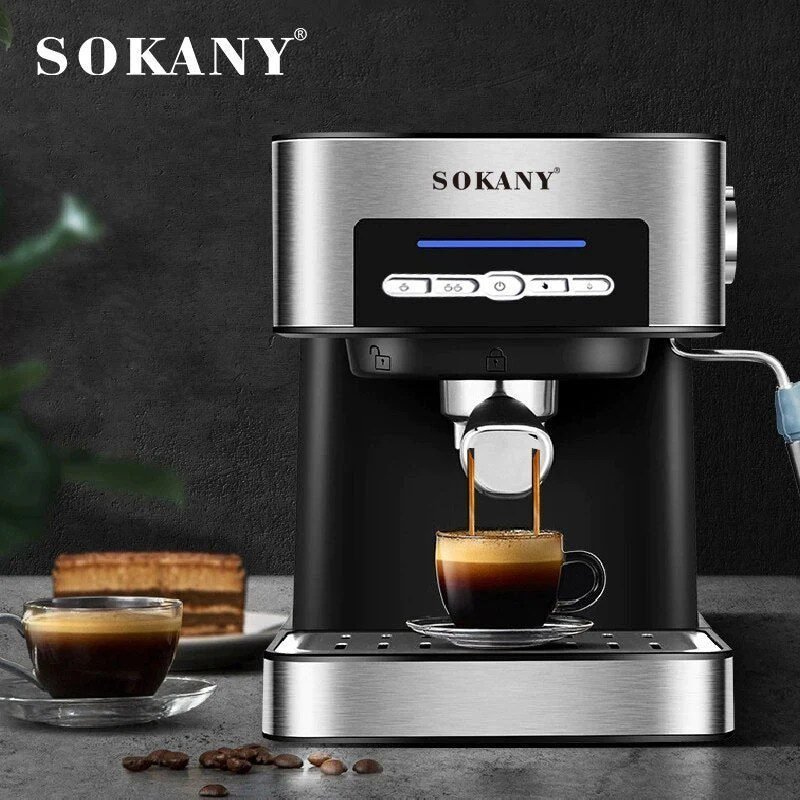 SOKANY 15 Bar Pump Espresso Machine With Milk Frother Steam Wand 1.6L Detechable Transparent Tank Cappuccino Maker 6862