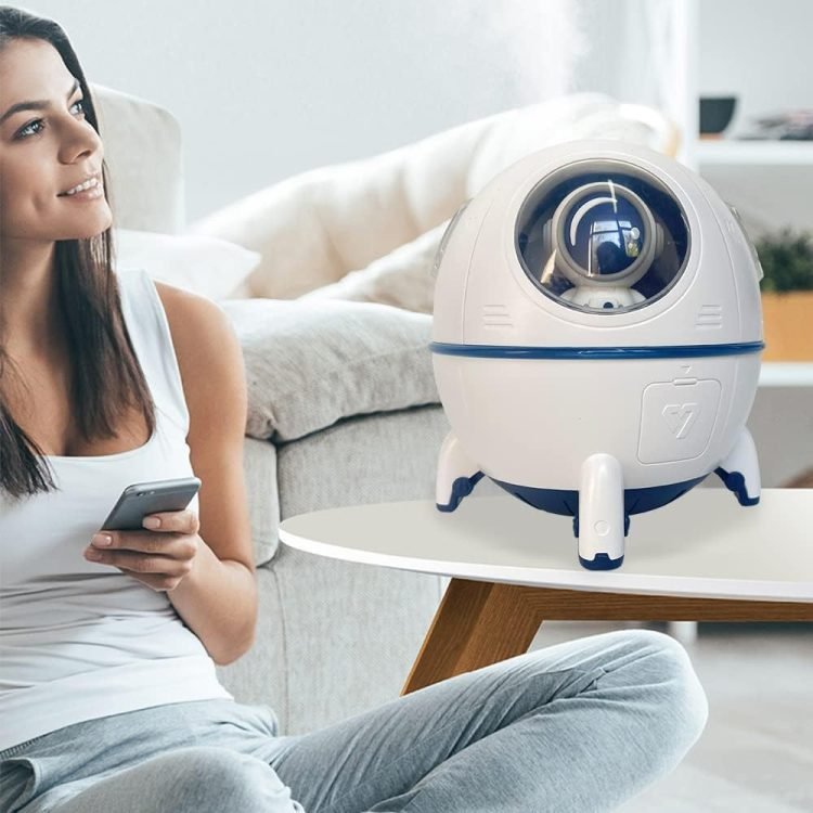 - ?Unique Space Capsule Design?This humidifier uses the latest ultrasonic technology,200ML Large Capacity Water Tank, long lasting humidified air, effective relief of dryness; cute space capsule shape, can be a good way to attract the attention of children. Besides, the space capsule has a built-in cute astronaut doll, which can be placed on the office desktop or bedroom desk or bedside as a delicate ornament.
