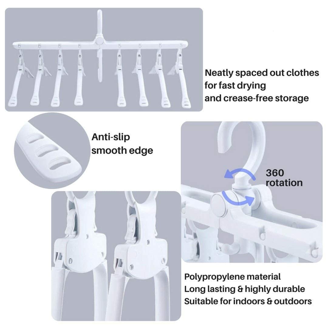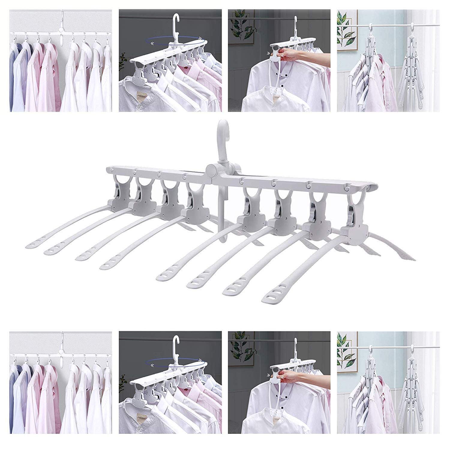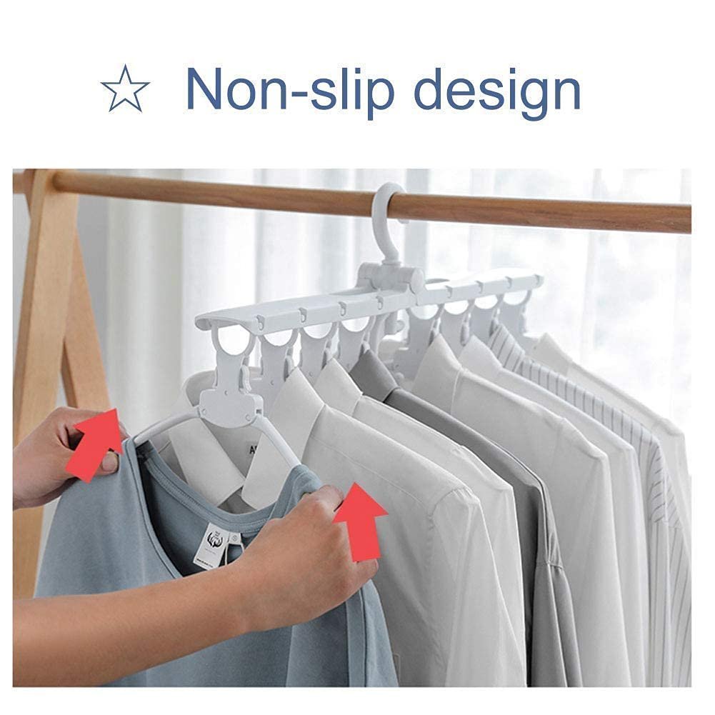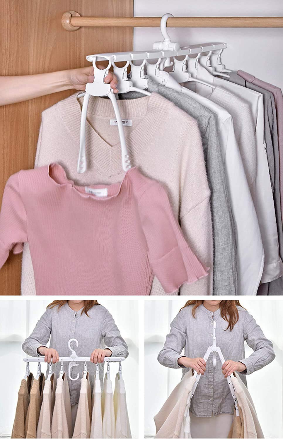Folding Cloth Hanger::: The load-bearing strength is strong, and there is no need to worry about the deformation of the hanger.It is always durable and maintains a good body shape. The widened non-marking design prevent wrinkles from appearing.Suitable for hanging shirts, T-shirts, coats, formal wear, shirts, jackets, sweater suits, dresses, baby and children’s clothing, etc.The non-slip groove on the shoulder of the hanger can hold the clothes in place, and the sensitive buttons can help adjust and fix the hanging angle.Wide shoulders, wide shoulders, non-slip, no bulging, easy support, no damage to the collar, no deformation.Folding hanger is made of PP material, which has good elasticity and wear resistance, strong and durable.8 in 1 magic clothes hanger folding clothes hanger, hang and collect 8 clothes at a time.After drying, the clothes can be collected directly, and the hanger can be folded for easy organization.The dual-purpose design saves closet space to the greatest extent. Hanging clothes on both sides while keeping them tidy and orderly makes it easier for you to view and grasp the clothes in the closet.