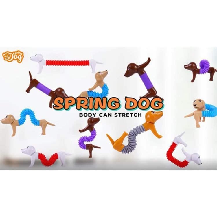 - The body of this spring dog is made of a popular tube, which can be retracted and deformed freely with pop sound allowing kids to get creative and pose in a variety of ways. Perfect Size: L/9.1 inches, W/6.1 inches, H/1.6 inches Inch.