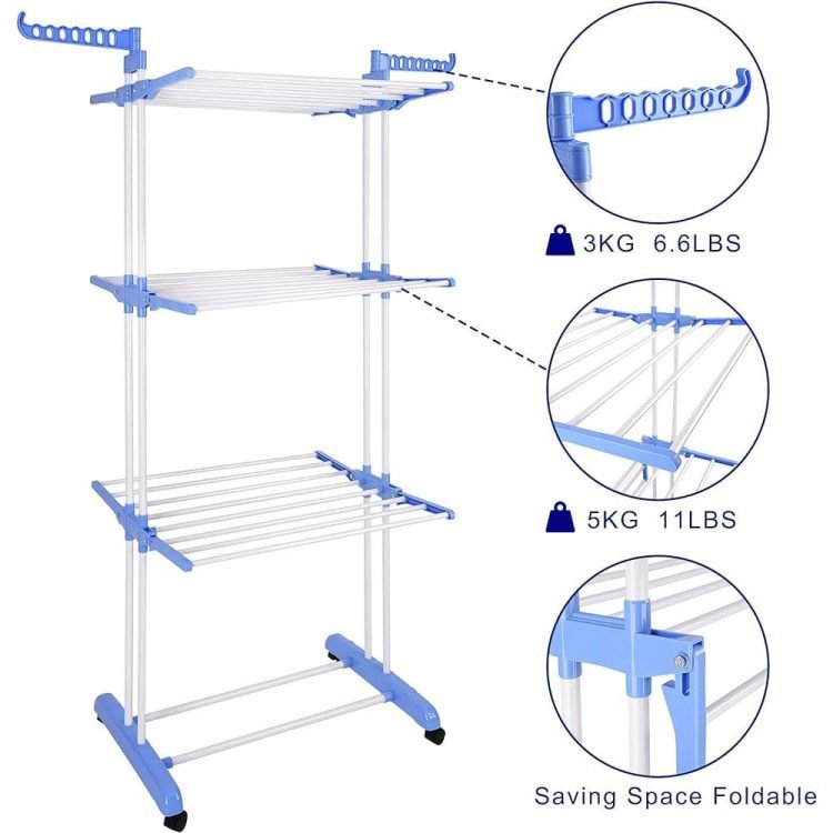 - HANG DRYER FOR CLOTHES: With 3 tiers and 2 side wings, you can hang your clothes with a nice amount of space between them so they can dry thoroughly