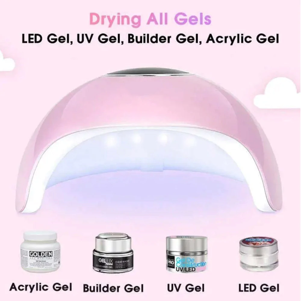 Product Description:Name: Nail LampColor: pink, with sensor and displayFeatures:1. Infrared intelligent induction (30 S 60 S 90 S timing)2.LCD display3.Bottom cooling holeProduct parameters:Material: plastic liner, piano UV paintPower: 24 WNumber of lamp beads: 12 UV / LED dual light sourcesColor: pinkRated output: 100-240 V AC 50/60 HZ 1 AWavelength: 365 + 405 mmProduct size: 17.5 * 16 * 8 cmPacking size: 19 * 18 * 9.5 cmPacking list:1* host, 1*usb cable