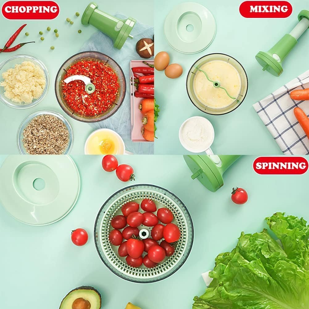- NOT ONLY A CHOPPER! – Except used as a food chopper, a mixer blade and a spinner basket are included. So, it can work as a mixer for effectively mixing egg liquid, ingredients and salad spinner for drying veggies and fruits after washing, highly versatile. You can change the function mode at will according to your different needs.
