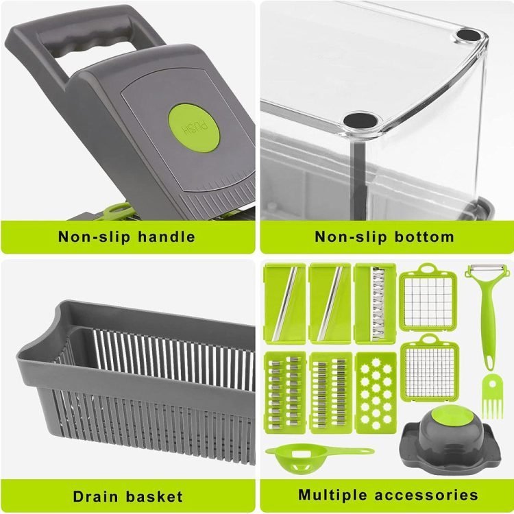 - Multifunctional vegetable cutter? The ultimate tool to meet all your cutting needs-use COMUSTER vegetable cutter to reduce your cooking time, it integrates all the flexible kitchen tools into a convenient chopping box. Whether you need to slice, chop, dice or dice, this all-round kitchen gadget can do it in seconds. Everything you need to prepare meals quickly is in this convenient vegetable chopper.