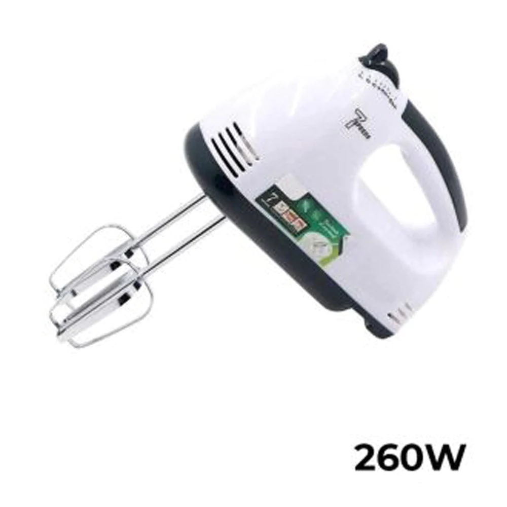 Product Description Speed: 7 selector + turbo Hand mixer with 4 attachments Chromium plated Specifications: Power: 260 W