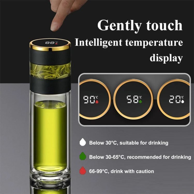 Stainless Steel Water Bottle Intelligent Temperature Display Thermos Cup Glass Tea Separation Warehouse Vehicle.