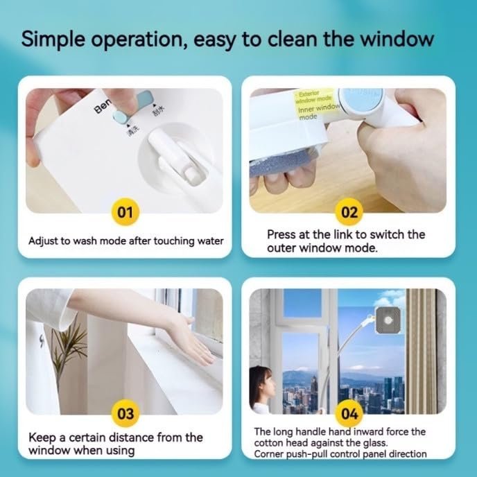 - Ergonomically comfortable handle, Indoor operation avoids the danger of high-rise building window cleaning.