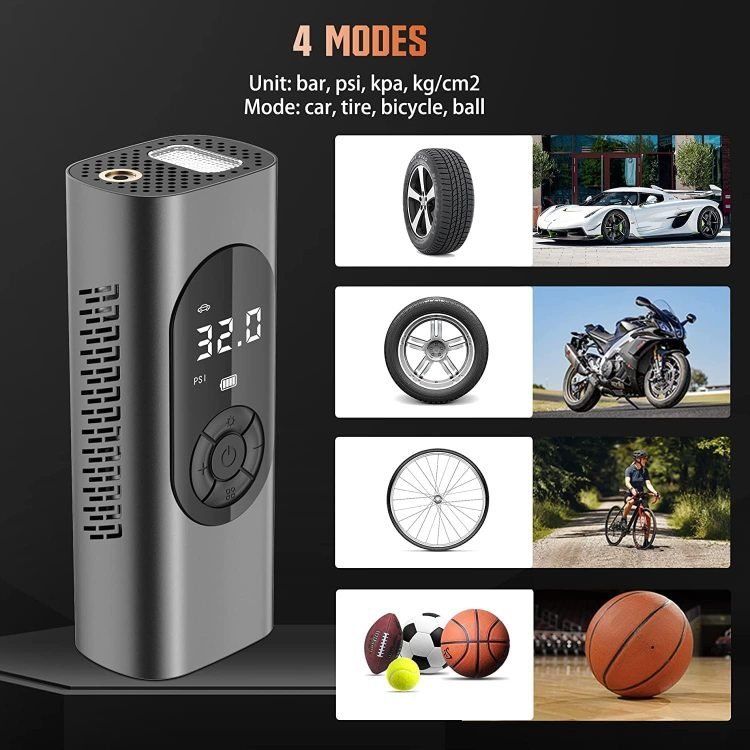 • LCD Digital Display: The digital tire pump for car tires has a large LCD digital display with 4 pressure measurement units: PSI, KPA, BAR, KG/CM. Real time reporting of accurate detection data, tire pressure at a glance!