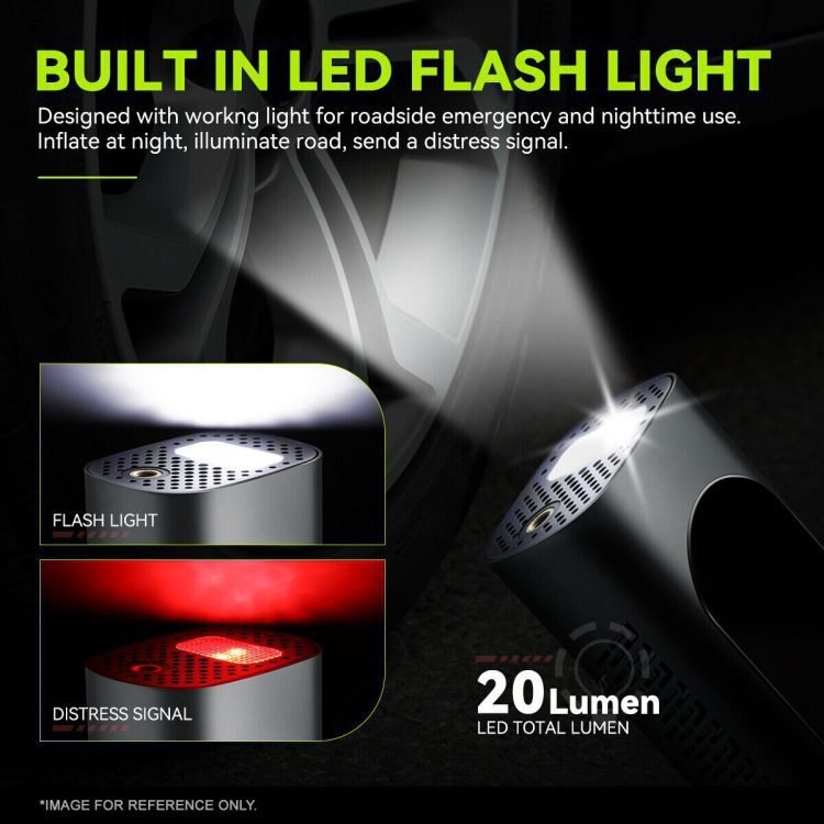 • Bright LED Lights: Super bright LEDs with 2 lighting modes (bright and flashing modes) make your car air pump suitable for roadside emergencies and nighttime use.