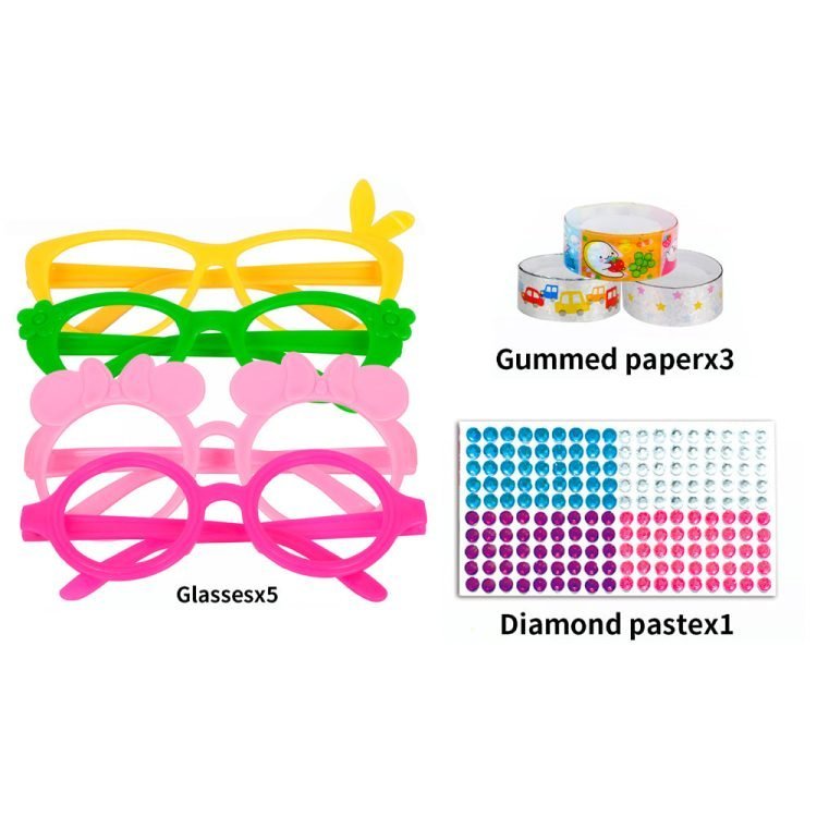 Inside this set, you’ll find a treasure trove of essentials: 3 dye toners, 1 nail polish, 1 finger splitter, 1 dryer, 2 clamps, 2 more nail polishes, 1 nail file, 5 pairs of glasses, 3 sheets of gummed paper, and 1 diamond paste. It’s everything your child needs to experiment and create a wide range of fashionable looks.