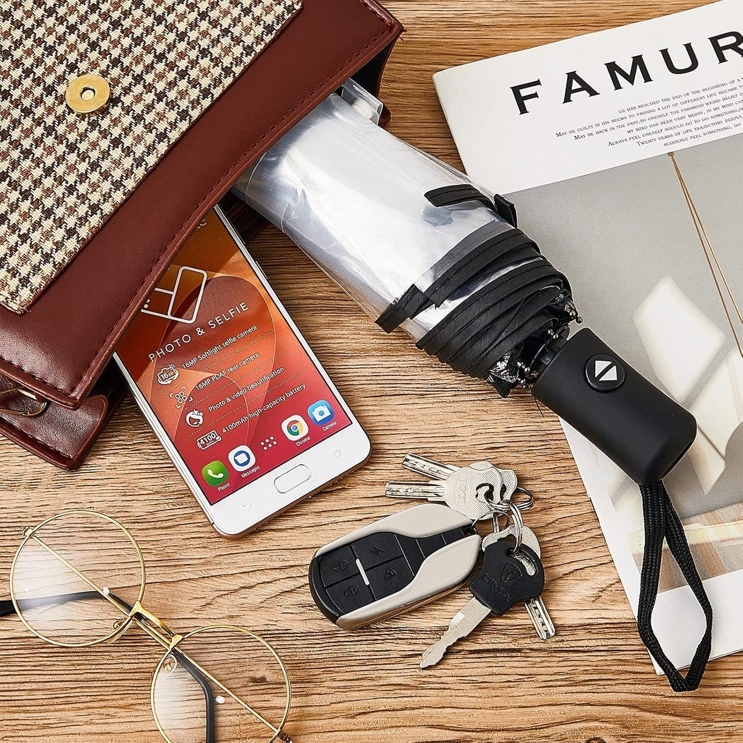 - ??Quality Materials?The specially coated and slip-resistant rubberized handle makes it outperform other compact umbrellas. Folding and portable to carry, suitable for travel, business and daily life use.