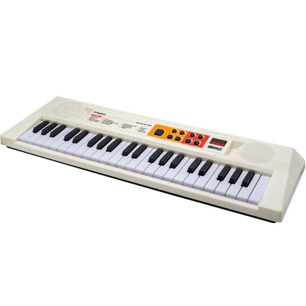 • Electronic piano made of high quality materials. Now you can learn music in a fun way with this electronic piano keyboard that has 44 keys for learning notes. It has a built-in microphone and speakers.