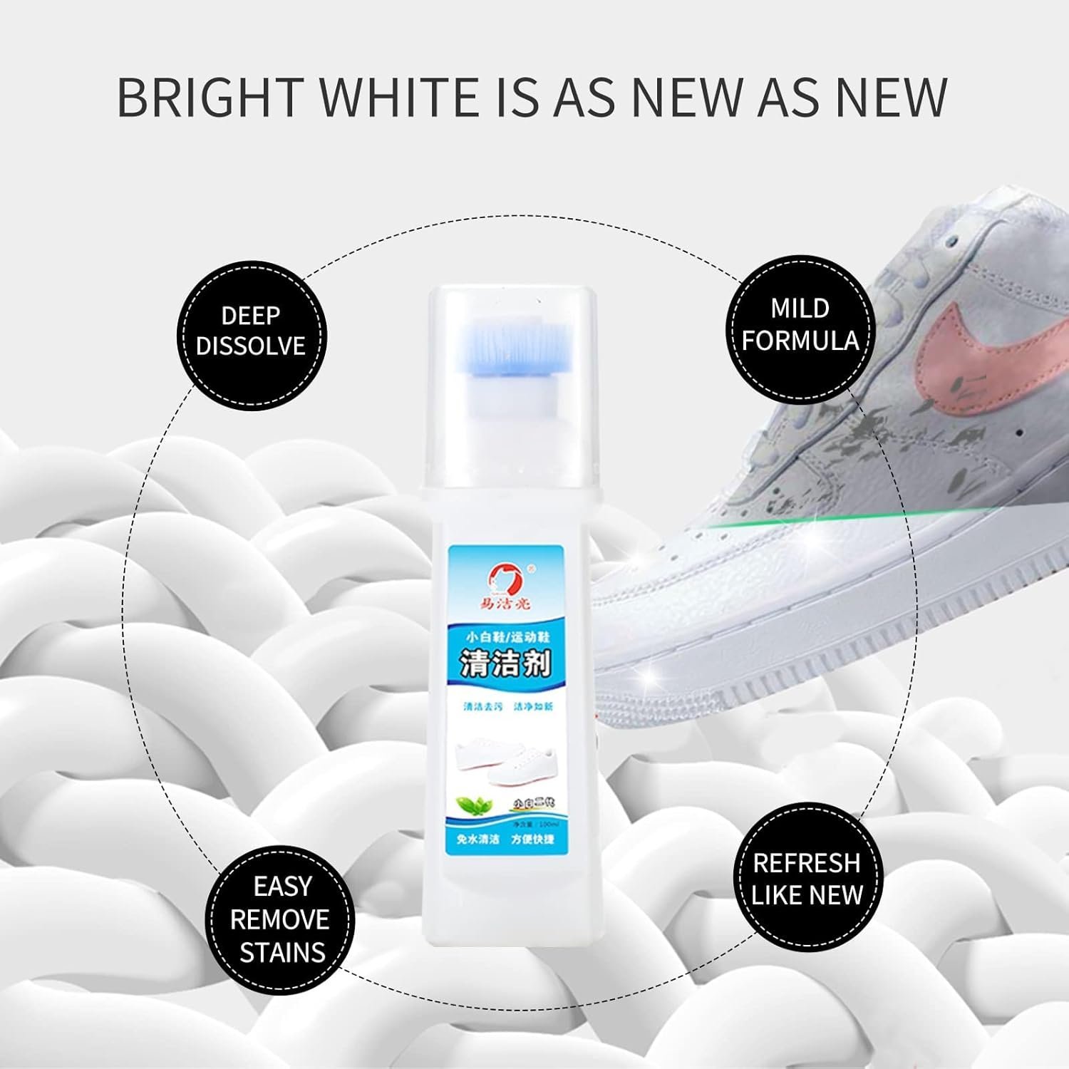 • BRIGHT AS NEW: The high detergency formula, rich in decontaminants, quickly whitens the upper, and the formation of a protective film on the surface, so that shoes are clean as new, safe, and harmless.
